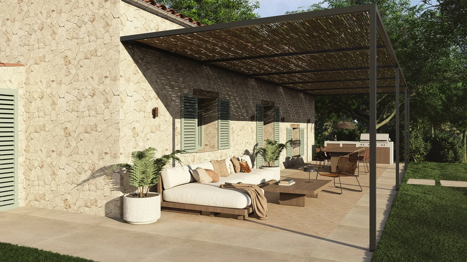 El proyecto combina materiales naturales con soluciones contemporáneas, respetando la esencia de la arquitectura existente. La distribución se optimiza para mejorar la funcionalidad y la conexión entre espacios, mientras que la luz y las texturas aportan confort y equilibrio.